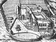 rund um die alte römische Stadtmauer (im Plan rot markiert) in einem weiten Bogen